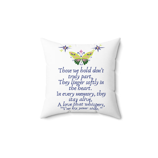 Remembrance Square Pillow with butterflies "Those we hold don't go away" 14x14'